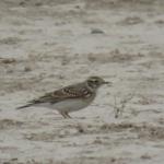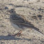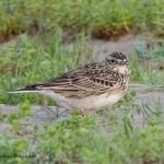 چکاوکی با جثه متوسط است که شباهت زیادی به «چکاوک آسمانی کوچک» دارد، اما به واسطه جثه بزرگتر، نوار سفید رنگ در حاشیه عقبی بالها، منقار نسبتاً کوچکتر و دم بلندتر از آن قابل شناسایی است. نر و ماده همشکل (نر اندکی بزرگتر) و فاقد تغییرات فصلی هستند. در پرنده بالغ تارک سر قهوهای مایل به خاکستری راهراه است که به کاکل کوتاه و گردی در پس سر منتهی میشود. نوار ابرویی کرم رنگ و گوشپرهای نخودی مایل به خرمایی دارد. روتنه قهوهای مایل به خاکستری همراه با رگهرگه تیره فراوان دیده میشود. سینه نخودی با راهراه تیره فراوان و شکم یکدست سفید است و در پهلوها راهراه کمتری دارد. در پرواز حاشیه عقبی بالها و پرهای کناری دم سفید است. در پرنده نابالغ دم کوتاهتر، خالهای روتنه بیشتر، سفیدی گلو یکنواختتر و لکههای مشخصتری در سینه دیده میشود.