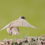 جوجهآوری از اواسط اردیبهشت و با تشکیل قلمرو در مناطق باز و بدون درخت، زمینهای بایر، علفزارها و تپههای شنی و سنگی آغاز میشود. تکهمسر است و آشیانهاش کاسهای کمعمق از الیاف نرم گیاهان است که آن را روی زمین و اغلب در پای بوتهها بنا و اطراف آن را با تعدادی سنگریزه محدود میکند. معمولاً سه تا چهار، گاهی پنج و به ندرت هفت تخم نیمهبیضی، صاف، تا حدی صیقلی، به رنگ سفید، سفید مایل به خاکستری، نخودی یا سبز، پوشیده از خالهای قهوهای یا زیتونی و به ابعاد 1/17 × 8/23 میلیمتر میگذارد. تفریخ تخمها یازده روز به طول میانجامد. جوجهها در بدو تولد پوشیده از کرک، ناتوان و برای تغذیه وابسته به والدین هستند، در نه تا ده روزگی آشیانه را ترک میکنند و در حدود 25 روزگی مستقل میشوند. معمولاً دو تا چهار دسته تخم در هر دوره جوجهآوری میگذارد.