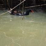 چندان اجتماعی نیست و در خارج از دوره جوجهآوری اغلب به تنهایی، جفت و یا در گروههای خانوادگی دیده میشود. پروازی قدرتمند و متفاوت از دیگر اعضای این خانواده دارد. با گامهای بلند در گلولای حاشیه آبها قدم میزند، به راحتی از ساقههای گیاهان کنارآبزی بالا میرود و در حالی که سرش را تکانمیدهد، به خوبی شنا و در آب غوص میکند. همهچیزخوار است و از حشرات، دانهها، میوهها و گاهی حلزونها و تخم پرندگان تغذیه میکند.