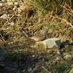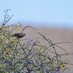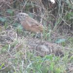 همچنین پوشپرهای بزرگ تر قهو ه ای مایل به سیاه، در حاشیه نخودی و در انتها سفید نخودی هستند که نوار بالی ناواضح پایینی را به وجود می آورند. دم نیز قهو ه ای مایل به سیاه، حاشیه پرهای داخلی آن نخودی و نیمه بیرونی پرهای خارجی آن سفید است. زیرتنه از بخش بالایی سینه تا پوشپرهای زیر دم یکدست نخودی بلوطی است. منقار خاکستری سربی و پاها قهو ه ای مایل به قرمز هستند.