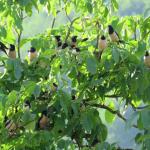 جوجهها در بدو تولد تا حد کمی پوشیده از کرک، ناتوان و برای تغذیه وابسته به والدین هستند، در حدود 24 روزگی آشیانه را ترک میکنند و کمی پس از آن مستقل میشوند. معمولاً یک و در صورت فراوانی حشرات به ویژه ملخها، دو دسته تخم در یک دوره جوجهآوری میگذارد.