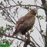 پرنده شکاری با جثه متوسط، سر کوچک و گرد، گردن کوتاه و ضخیم، بالهای پهن و دم کوتاه و گرد است. در ریختهای متنوع از تیره تا روشن دیده میشود، اما ریخت قهوهای تیره آن معمولتر است. نر و ماده همشکل (ماده اندکی بزرگتر) و فاقد تغییرات فصلی هستند. پرنده بالغ روتنه قهوهای و شاهپرهای پرواز قهوهای تا قهوهای مایل به سیاه دارد. روی دم قهوهای و زیر آن سفید با راهراه عرضی باریک و تیره، همراه با یک نوار پهن تیره در انتها است. زیرتنه قهوهای تا قهوهای مایل به سیاه و نوار روشنی در بخش بالایی دارد که سینه را از شکم جدا میکند. در حال پرواز، خطوط طولی به رنگ خاکستری، قهوهای تا زرد مایل به قهوهای در پوشپرهای زیر بالها قابل مشاهده است. شاهپرهای پرواز مایل به سفید و در انتها سیاه هستند و تشکیل نواری سیاه در حاشیه و نوک بالها میدهند. همچنین پاهای بدون پر و زرد رنگ دارد. پرنده نابالغ فاقد نوار انتهایی دم است و خطوط زیرتنه به خصوص در ناحیه شکم و زیر بالها بیشتر و واضحتر هستند. زیرگونه B.b. vulpinus پروبال و دم روشنتر مایل به خرمایی و شاهپرهای روشنتر در زیر بالها دارد و لکه تیره در سطح زیر بالها در ناحیه مچها به سختی قابل مشاهده است.