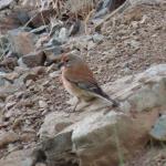 سهرهای کوچکجثه با روتنه و شانههای بلوطی و منقار کوتاه خاکستری است. نر و ماده متفاوت هستند و پرنده نر تا حدی تغییرات فصلی دارد. پرنده نر بالغ در دوره جوجهآوری سر و گردن خاکستری و لکه قرمز کوچکی در جلوی پیشانی دارد. دو نیم دایره سفید در بالا و پایین چشمها و لکهای به همین رنگ در بخش پایینی گونهها دیده میشود. شانهها و بخش بالایی روتنه، بلوطی همراه با رگهرگه تیره نامشخص و بخش پایینی آن و دمگاه بلوطی روشن است. شاهپرهای پرواز قهوهای مایل به سیاه و حاشیه درونی شاهپرهای اولیه سفید است که در تضاد با رنگ سیاه پوشپرهای شاهپرهای اولیه و رنگ بلوطی پوشپرهای روی بالها به شکل لکه سفیدی در زمان بسته بودن بالها و به شکل خطوط سفید مشخصی در امتداد شاهپرهای اولیه در زمان پرواز به نظر میرسند. دم مایل به سیاه و حاشیه پرهای آن سفید است. دو طرف سینه قرمز صورتی، پهلوها نخودی رگهرگه، شکم و پوشپرهای زیر دم سفید با سایهای به رنگ نخودی روشن و پوشپرهای زیر بالها سفید دیده میشوند. در خارج از این دوره، رنگ بدن ماتتر به نظر میرسد و فاقد لکه قرمز در جلوی پیشانی و در دو طرف سینه است، اما خالهای قهوهای طلایی روی سینه به چشم میآید. پرنده ماده سر و روتنه قهوهای با رگهرگه تیره فراوان دارد و شبیه به نر، لکههای روشنی اطراف چشمها و روی گونهها دیده میشود. گلو و سینه نخودی و مابقی زیرتنه سفید است و رگهرگه تیره فراوان به ویژه در سینه و پهلوها به چشم میخورد. پرنده نابالغ شبیه به ماده است، اما نخودیتر به نظر میرسد و رگهرگه نازکتری دارد، چانه و گلوی سفید نخودی دارد، حاشیه دم شبیه به بالغها، سفید دیده میشود اما فاقد لکه سفید روی بالها است.