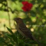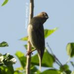 پرندە مادە بالغ و نر یک ساله شباهت زیادی به یکدیگر دارند و فاقد رنگ قرمز درخشان هستند، سر قهوه ای خاکستری و روتنه و دم قهوه ای زیتونی تا قهوه ای خاکستری دیده می شود. بالها قهوه ای و حاشیۀ شاهپرهای پرواز زیتونی است و به واسطۀ رنگ روشن نوک پوشپرهای میانی و بزرگ تر، دو نوار بالی مشخص روی بالها تشکیل می دهد. چانه، گلو، سینه و پهلوها سفید نخودی همراه با خالها و رگه رگە تیره فراوان و پوشپرهای زیر دم تقریباً سفید است. پرندە نابالغ شباهت زیادی به ماده دارد ولی رنگ بدن بیشتر زیتونی قهوه ای به نظر می رسد و خالها و رگه رگە تیرە فراوانی در سطح بدن دارد. همچنین نوارهای بالی نخودی تر، حلقۀ دور چشمها نخودی روشن و پاها قهوه ای روشن هستند.