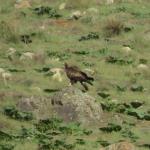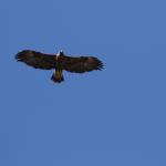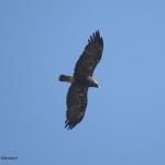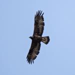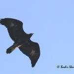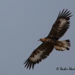 بزرگ ترین عقاب ایران با بالهای بلند با شاهپرهایی بلند و انگشتانی روبه بالا و دمی بلند است. نر و ماده شکل هم با این تفاوت که ماده کمی بزرگ تر است. فاقد تغییرات فصلی می باشند. در پرندۀبالغ روتنه قهوه ای تیره، تارک سر و پس گردن قهوه ای طلایی و پوشپرهای میانی بالها کرم تا زرد مایل به قهوه ای است که تشکیل نواری روشن روی بالها می دهد. زیرتنه قهوه ای تیره تا روشن، لبه بالها در زیر همچنین انتهای دم بلندش تیره رنگ است. پرندۀ نابالغ شبیه به پرندۀ بالغ ولی رنگ عمومی بدن قهوه ای تیره است و تارک و پس سر زرد مایل به قهوه ای دارد. قاعدۀ شاهپرهای اولیه و ثانویه در زیر بالها لکه سفیدی دارند که در پرواز به خوبی دیده می شود. دم نیز سفید و نوار سیاهی در انتها دارد.