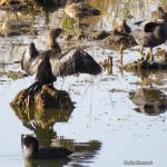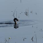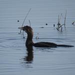 پرندهای اجتماعی و پر جنبوجوش است. پروازی فعال با بالزدنهای سریع و بالبازرویهای کوتاه دارد و به راحتی روی شاخههای درختان، نیها و دیگر گیاهان کنار آب فرود می آید. معمولاً خارج از آب با بالهای باز و گردن جمعشده، روی درختان، صخرهها و تیرهای چوبی آفتاب میگیرد. بیشتر از ماهیها، گاهی از ولهای آبزی و زالوها تغذیه میکند. اغلب از بالای شاخههای درختان درون آب را با دقت نگاه میکند و پس از یافتن طعمه شیرجه می زند. معمولاً به دنبال طعمه در عمق دو تا سه متری از سطح آب، حدود 10 تا 42 ثانیه غواصی میکند.