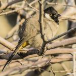بلبلی زیبا، پرسروصدا و آشنا برای بسیاری از مردم است. در پرنده بالغ سر و گلو سیاه و لکه بزرگ سفیدی روی گونهها دیده میشود. کاکل کوچکی نیز روی تارک سر دارد. روتنه و پوشپرهای روی بالها قهوهای خاکستری و شاهپرهای پرواز قهوهای مایل به سیاه هستند. دم نیز به همین رنگ و انتهای آن سفید است (به استثنای دو پر میانی). سینه و پهلوها قهوهای خاکستری روشن، مابقی زیرتنه خاکسریچرک و پوشپرهای زیر دم زرد مایل به نارنجی به نظر میرسد. منقار و پاها نیز سیاه هستند. در پرنده نابالغ سر قهوهایتر است، سفیدی گونهها کمتر مشخص و پوشپرهای زیر دم رنگ پریدهتر است. همانطور که گفته شد پرنده نر و ماده از لحاظ شکل ظاهری همشکل هستند و با تغییر فصل تغییراتی در ظاهر آنها ایجاد نمیشود.