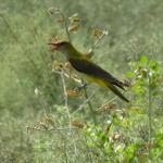 پری شاهرخ از آن پرندگان اردیبهشتی است که در بهار شاهد حضورش هستیم. زیباست اما خجالتی. خیلی بیشتر از آنکه ببینیدش صدایش را می شونید و چه آواز زیبایی دارد. حتماً آوازش را تشخیص خواهید داد و آن موقع است که تلاشتان برای دیدن شکوه زرد رنگش آغاز می شود. آنقدر سربه هوا می شوید تا ببینیدش یا متوجه شوید که گردنتان درد می کند. پروازش کوتاه و از درختی به درخت دیگر است. میوه ها نظیر توت، انجیر و انگور و حشرات و کرمها خوراک او را تشکیل می دهند. به خاطر علاقه اش به انجیر به او مرغ انجیر خوار نیز می گوبند. در آوازش گویی می گوید: "یوسف بیا" از این روست که در بخش هایی از استان همدان او را "یوسف بیا" خطاب می کنند و افسانه ای برای آن نقل می کنند که این پرنده همان زلیخاست که به دنبال یوسف می گردد. یا در افسانه ای دیگر نقل می کنند این پرنده دختری بوده که یوسف عاشقش بوده است ولی به عشق یوسف بی اعتنایی می کند و سر عشوه گری در پیش میگیرد و اما یوسف که فکر می کند او شخص دیگری را دوست دارد سر به بیابان میگذارد و می رود و هیچ وقت دیگر خبری از او نمی شود، دختر که متوجه پایداری عشق او می شود نادم و پشمیان آنقدر زاری می کند تا تبدیل به پرنده ای می شود که به دنبال یوسف در زمین از درختی به درخت دیگر سرگردان است و او را صدا می کند.